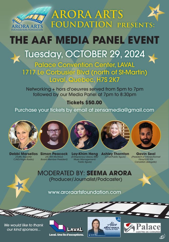 Our ARORA ARTS team is proud to present our 7th edition yearly Media Panel that will take place on October 29th, 2024 at the popular Palace Convention Center 1717 blvd.Le Corbusier, Laval, Quebec, H7S 2K7.